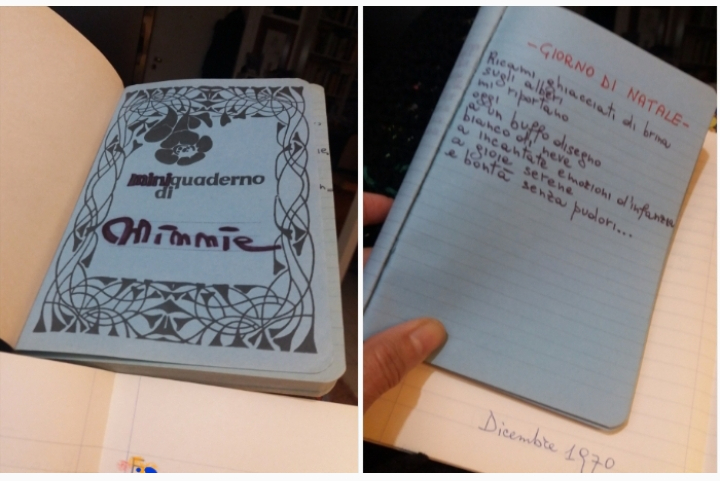 Mi è tanto difficile parlare del Natale che non so come concludere. Ricorro allora alla foto di una poesia scritta esattamente mezzo secolo fa, sul quadernetto turchese che comprendeva l’intera mia produzione giovanile, inclusa la composizione poetica che due anni prima, diciassettenne, mi aveva procurato il giudizio “Ottima” di Giuseppe Ungaretti, scritto con l’inchiostro verde della sua stilografica, sulla pagina della rivista dove ero stata pubblicata.