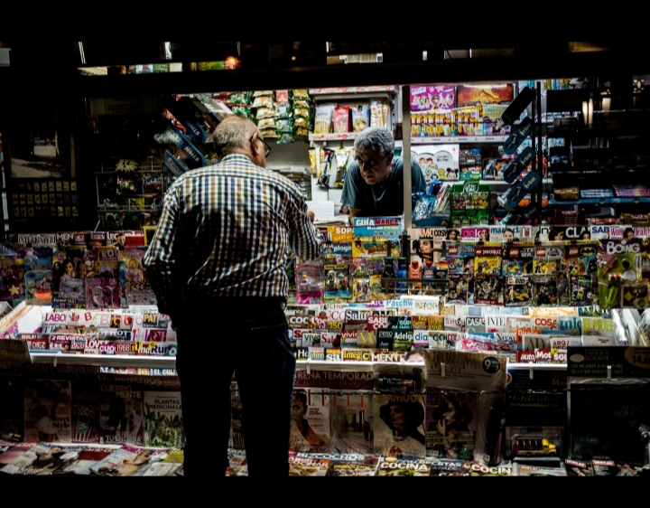 Indugio un attimo per capire e mi guardo attorno. In prossimità dell’edicola erano tutti con mascherine sul viso, parecchi con nessun quotidiano o rotocalco in mano, e c’era anche chi ai giornali non era palesemente interessato. Erano tutti là per quello che stava accadendo – magari per poterlo raccontare come fatto del giorno, la notizia di cui parlare a pranzo, a casa, di ritorno… Non tutti stavano in prima fila sfrontatamente. C’era anche chi usava l’edicola per guardare da posizione riparata cosa stava accadendo dietro, poco più in là, come curiosi che per discrezione o timore vogliano vedere restando protetti. Mi sono accorto da piccole cose che qualcosa stava succedendo e che le persone che stavano là attorno erano richiamate da qualcosa. La mia sensazione è diventata certezza quando ho visto che tra di loro c’era anche il giornalaio. Non è la mia edicola, non è la mia zona, ma sono fisionomista: credo lo sia anche il giornalaio, giacché, appena mi ha visto mi ha salutato da dove stava ed è rientrato subito dietro il bancone. Anche lui era uscito per guardare e commentare. Il più stanziale di tutti sul luogo dell’accadimento, nessuno può dire la sua meglio di lui, iniziando il racconto dal principio. Un giornalaio che sta sulla notizia, finalmente. Siccome non capivo cosa stesse succedendo, chiedo – oltre ai soliti giornali- informazioni, facendo cadere con ostentata indifferenza: “Ma …che è successo?”. “Niente – fa lui ridendo- uno psicolabile che si è accampato là dietro con le sue cose e che non vuole che portino via l’immondizia. Ha fatto il diavolo…”.