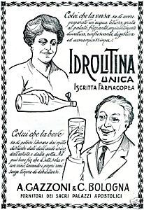 In ogni caso, la ditta Gazzoni ottenne di diventare fornitrice di Idrolitina per il Palazzo Apostolico, e poi per la Real Casa, due riconoscimenti che sono rimasti a lungo sulla confezione di sapore vecchiotto. Il successo della storica polverina è continuato fino agli anni ‘60/’70: nel frattempo erano nate diverse concorrenti, alcune con formulazioni leggermente diverse come Frizzina, la prima a proporre la bustina unica, la Cristallina Ferrero o la Idriz Carlo Erba (E qui lo slogan di Carosello recitava “ Acqua in bocca, ma che sia acqua preparata con le polveri Idriz”). Prodotti molto apprezzati in anni in cui l’acqua minerale era piuttosto costosa e venduta in pesanti bottiglie di vetro “a rendere”.