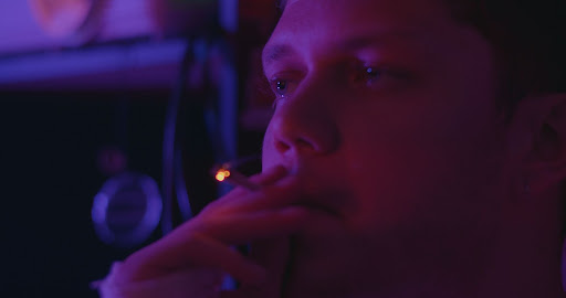 Uno dei colori principali che abbiamo usato all’interno dell’appartamento è il viola, che ha una bella caratteristica illusoria. Può essere molto etereo, e volevo usarlo per l’appartamento del protagonista, in modo da poterlo associare al suo stato mentale. La soluzione che ho trovato è stata quella di utilizzare le lucine RGB che cambiano colore, le stesse che si possono trovare in qualsiasi stanza di un adolescente di oggi, o nei bar di Korea Town qui a New York.