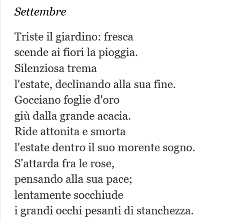 Settembre è il mese che preferisco, in cui compio gli anni, over 60, garantisco; proprio in questo mese, per il numero di settembre, il direttore mi ha invitato a collaborare. I versi che seguono sono, come è noto, di Herman Hesse. Per dire grazie a Minnie Luongo, il cui autore preferito è per l’appunto lo scrittore tedesco, premio Nobel per la letteratura nel 1946.