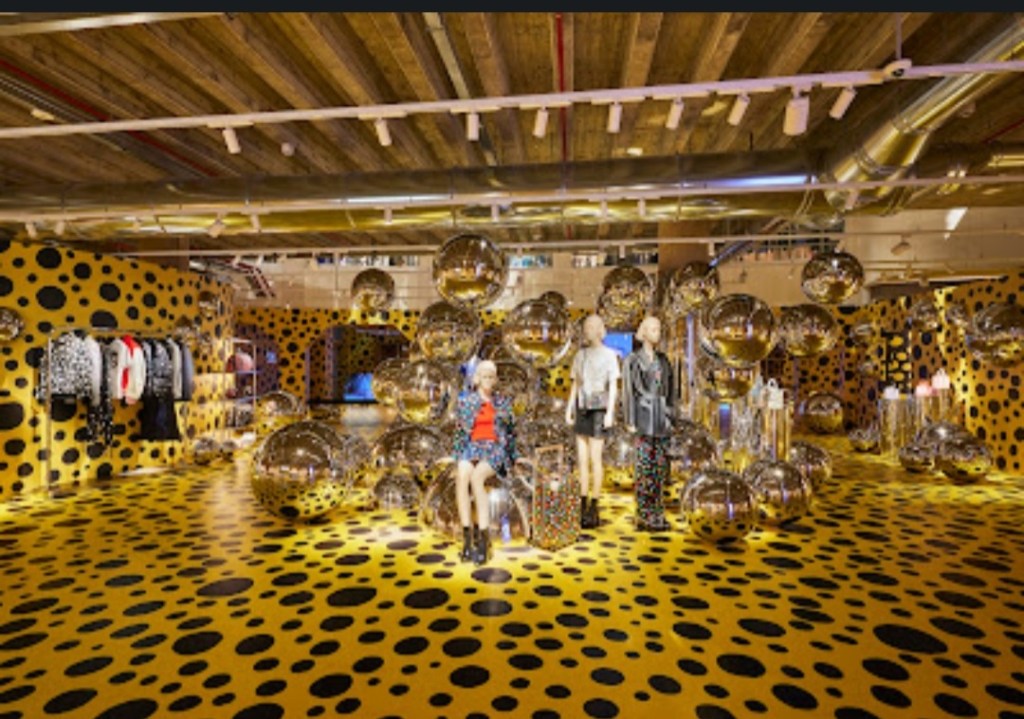 Louis Vuitton ha scelto di celebrare così l’apertura della sua nuova sede milanese nell’ex garage Traversi (www.louisvuitton-com), confermando la collaborazione tra Kusama e l’azienda francese, che ha riproposto i pois caratteristici della sua arte, ripetuti all’infinito in diverse dimensioni e colori, su borse, accessori e capi di abbigliamento, ma anche nell’arredamento del nuovo spazio.