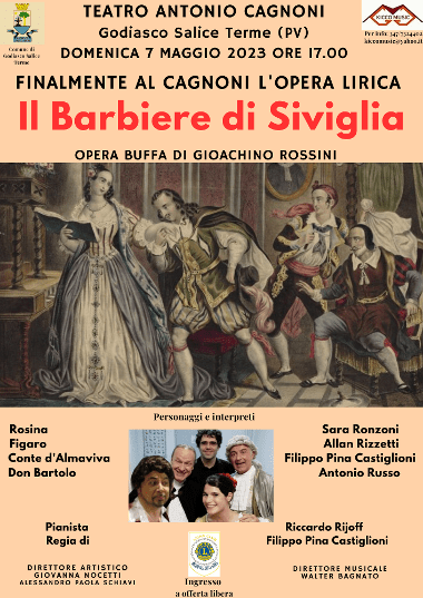 →Maggio vedrà invece tre appuntamenti culturali di diverso taglio e importanza, ossia il ritorno dell’opera lirica con ”Il Barbiere di Siviglia” nel riadattamento da camera per la regia di Filippo Pina Castiglioni, un nome della musica lirica internazionale, celebre proprio per aver riproposto le arie da camera in prestigiosi luoghi culturali, come lo scorso anno al Castello Sforzesco di Milano. Appuntamento alle ore 17.00, ingresso gratuito.