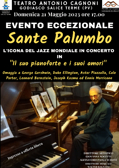 →Domenica 21 Maggio un nome mondiale della musica calcherà il palcoscenico del Cagnoni per incantare con le sue mani: Sante Palumbo. Il pianista e jazzista di stampo unico che ha suonato con Elle Fitzgerald, Ennio Morricone e i più grandi del mondo, suonerà le sue musiche preferite al pubblico in sala. L’attesa è per le ore 17.00 ad ingresso gratuito, il suo nome è una perla unica live dato che da diversi anni il pianista, salvo alcune eccezioni, si è praticamente ritirato dalle scene.