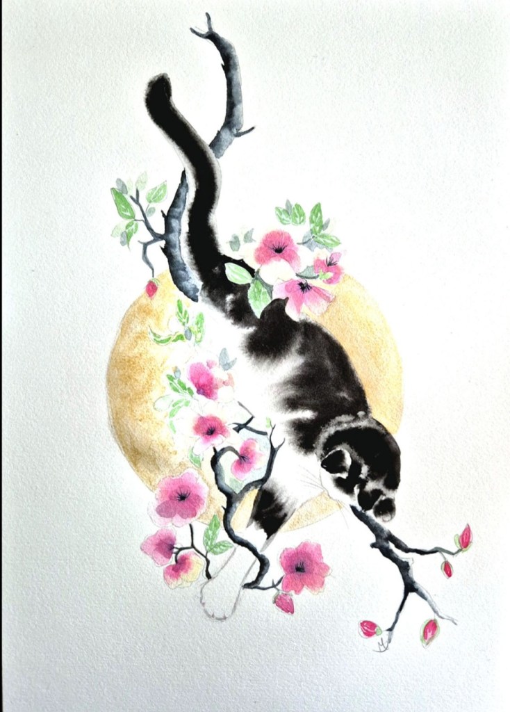Oggi poi ho cambiato professione e faccio l’artista: dipingo gatti e paesaggi, sia a olio che acquerello. Come mai questo cambiamento? Dopo la morte del mio gatto Piumino, ho capito tante, troppe cose. Ho vissuto un periodo davvero nerissimo ma… questa è un’altra storia! E in onore di Piumino tutte le mie creazioni si chiamano “piumini”.